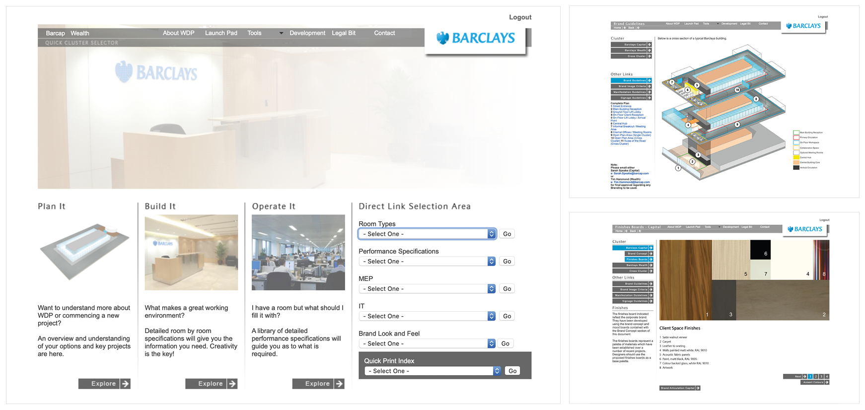 This year-long project, carried out in close collaboration with the interiors team, involved attending workshops, analysing existing documentation, and consulting with key stakeholders. Hosted on the Barclays intranet, the resulting website is used globally and incorporates the organisation’s finishes and branding guidelines.